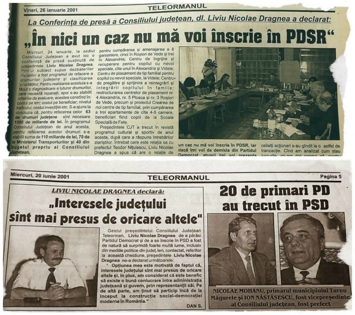 Dragnea hevesen tagadott: „Semmi esetre sem fogok belépni a PDSR-be. Ha netán kilépnék a Demokrata Pártból, akkor a megyei tanácsi elnökségről is le fogok mondani és visszatérek a vállalkozásaimhoz.” 2001 januárja volt és alig néhány hónap múlva megszegte a szavát.