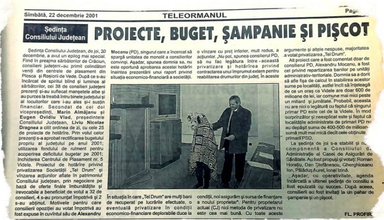 Így jelent meg először a sajtóban a Tel Drum vállalat nagy vitát kiváltó privatizációja. 2001. december 21-én történt, Dragnea pedig boldog volt, és nagylelkű a Teleorman Megye Tanácsa épületében lévő irodájába érkezett kolindálókkal.