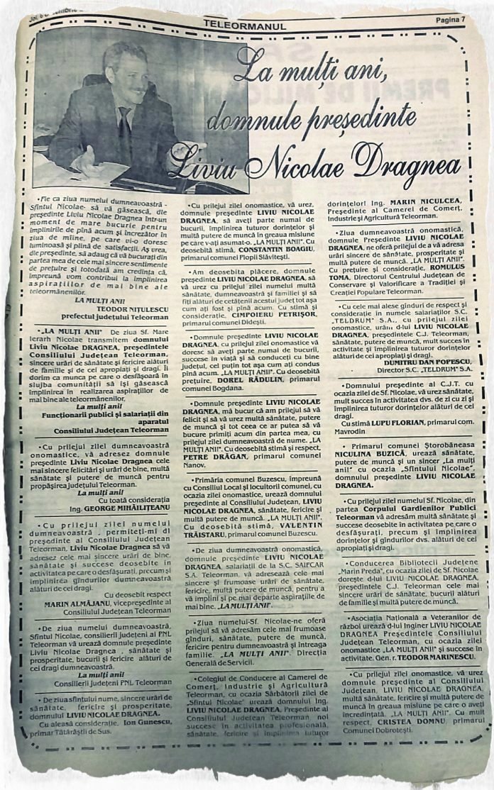 De Liviu Dragnea nem elégedett meg helyesbítésekkel. Azt akarta, hogy ilyenfajta cikkek ne ismétlődhessenek meg: A Teleormanul újságot Gheorghe Filip vezette (aki már 1969 óta a szerkesztőség tagja volt) és a rögtön a forradalom után végrehajtott MEBO típusú privatizációval az alkalmazottak tulajdonába került.