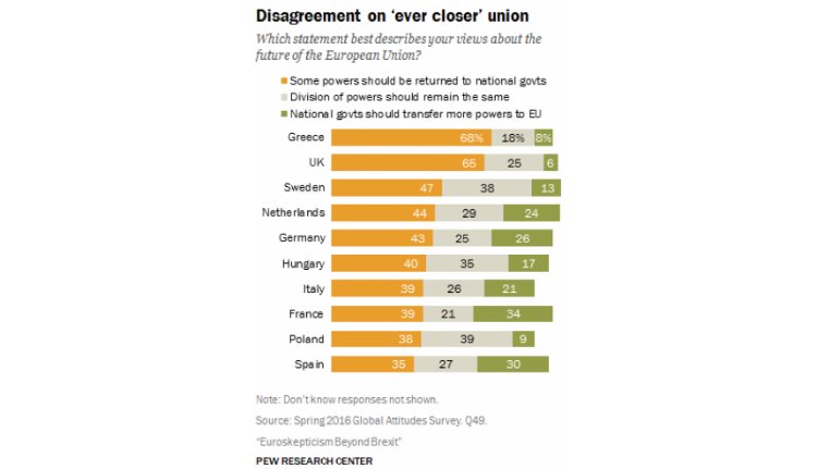 „Voltaképpen erről volt szó a népszavazáson: több vagy kevesebb Európát akarunk… A britek 65 százaléka azt mondja, hogy több hatalmat akarnak Brüsszelből visszahozni Londonba, mint ahogy a svédek 47, a dánok 44 és a németek 43 százaléka is több hatáskört és hatalmat akar visszajuttatni a fővárosoknak.”