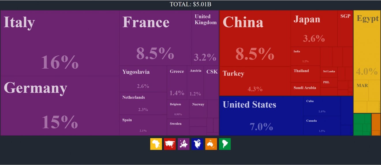 Románia 1989-ben 5 milliárd dollár értékben exportált, zömmel európai országokba, de a kontinensen kívüli piacokra is.