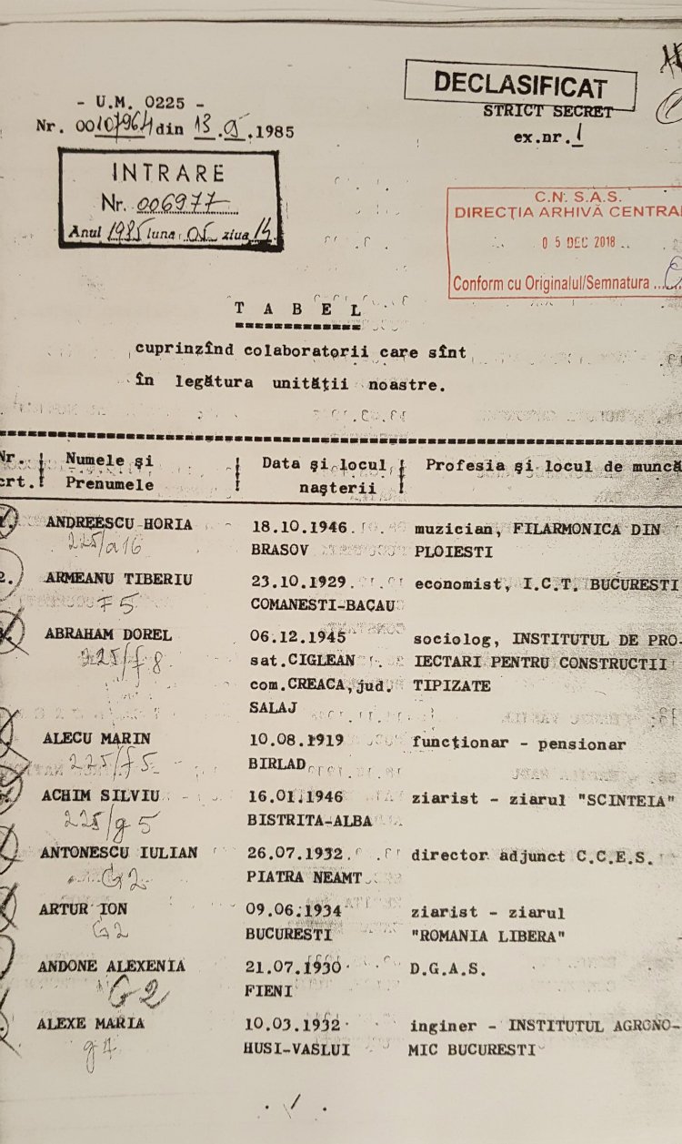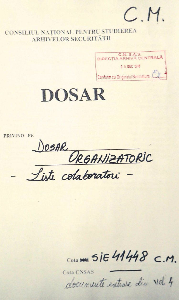 amikor átadta a hajdan szigorúan titkos minősítésű aktát a Securitate Irattárát Vizsgáló Országos Tanácsnak (CNSAS).