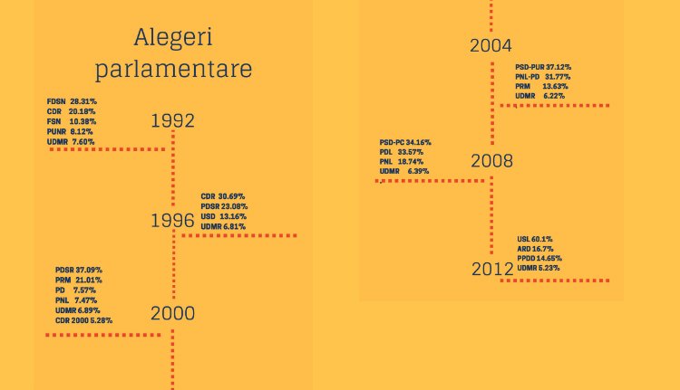 1996 kivételével minden alkalommal a PSD (Szociáldemokrata Párt – a szerk.) érte el a legjobb eredményt, de ez nem mindig biztosította számára a hatalmat. A legtöbb választáson szoros eredmény született, kiemelve a román választások egyik fontos, legtöbbször félreértett jellegzetességét: az emberek különféle politikai kombinációkkal próbálkoztak, a forradalom utáni FSN-s (Nemzeti Megmentési Front – a szerk.) monoblokktól a CDR-ig (Román Demokratikus Konvenció – a szerk.), az előbbivel szöges ellentétben álló 1996-os koalícióig. Aztán PDL (Demokrata-Liberális Párt – a szerk.) és PNL (Nemzeti Liberális Párt – a szerk.) vagy PSD és PNL közötti koalíciókkal próbálkoztak. A hatalom az egész ideológiai tengely mentén megoszlott a demokrata-szocialisták és a liberálisok között. A valamennyi parlamenti választáson leadott összes szavazatból a baloldali pártok 18,8 millió, a jobboldaliak pedig 19 millió voksot kaptak (a szélsőséges pártokra leadott szavazatokat nem számítva).