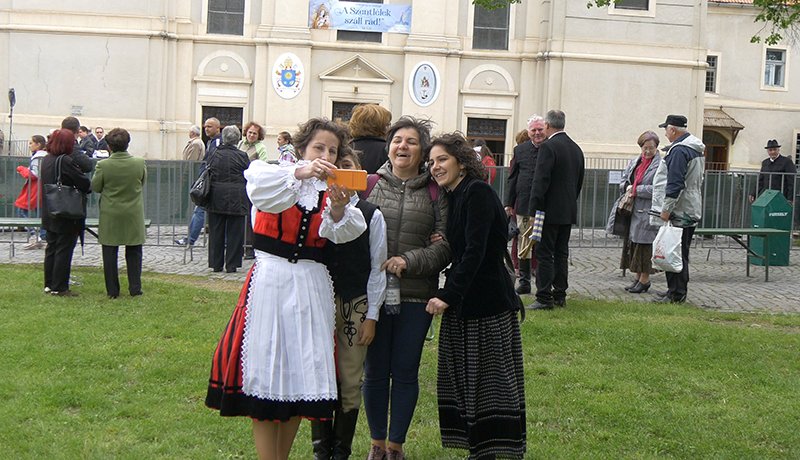 A hívek lazán elfértek a kegytemplom előtt, a nyeregbe is csak páran kapaszkodtak fel, de Csíksomlyó nem volt üres pünkösd szombatján.