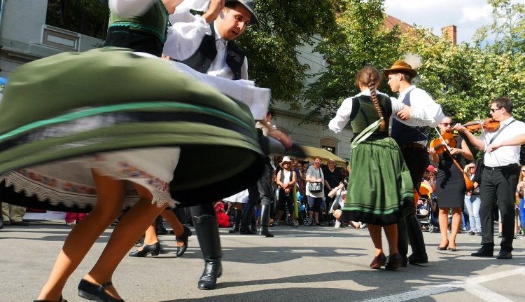 A nagykorusított, 18. néptánctalálkozó meghívottjai útban a Főtér felé, a Farkas utcában is megcsillogtatták tánctudásukat.