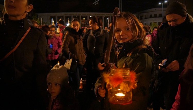 Óvodások, kisiskolások és az őket kísérő szülők, nagyszülők házi készítésű lámpásaikkal vittek fényt a sötétbe a Márton-napi felvonuláson.